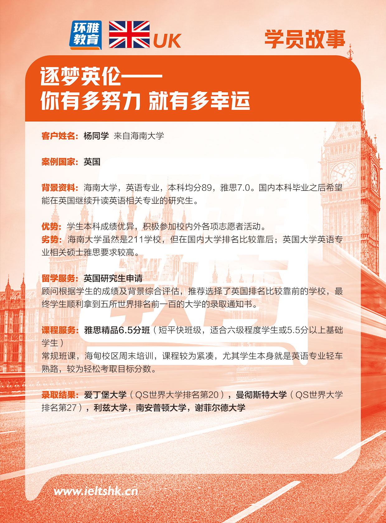 首页    留学案例    逐梦英伦——你有多努力 就有多幸运